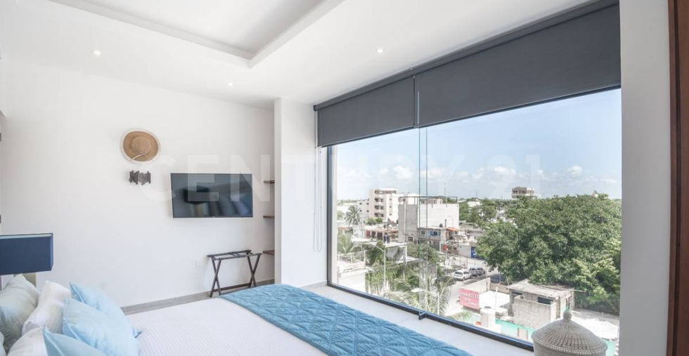 Get to know this residential located in the Center of Playa de Carmen, a few blocks from Playa Mamitas and Coco, Fifth Avenue, Restaurants and Night Clubs. Dare to enjoy the Mexican Caribbean and those unforgettable vacations. This apartment has a room with modern finishes.